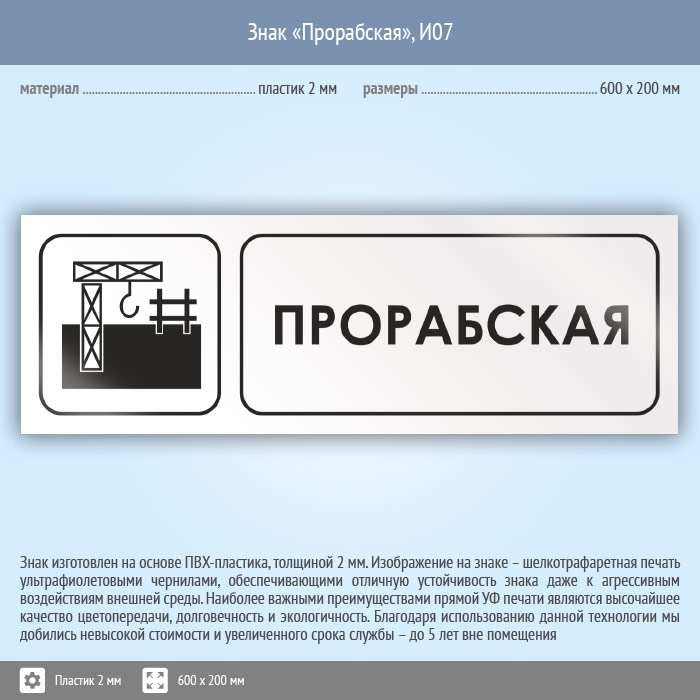 Знак «Прорабская», И07 (пластик, 600х200 мм) в Улан-Удэ купить