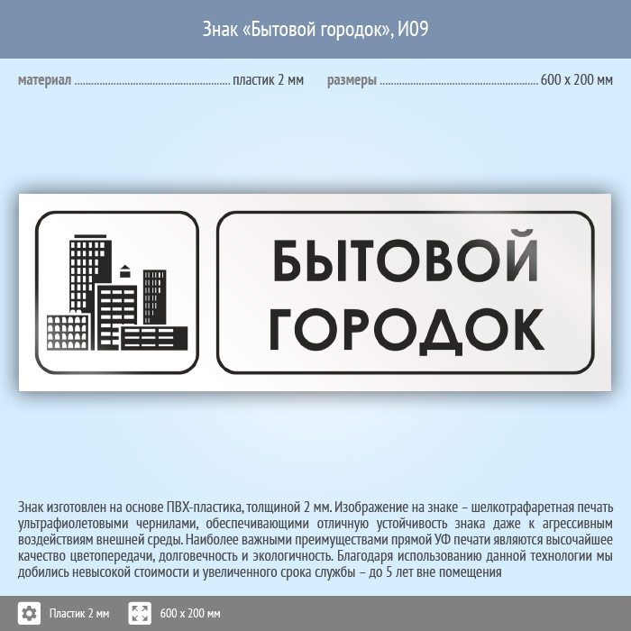 Знак «Бытовой городок», И09 (пластик, 600х200 мм) в Улан-Удэ купить