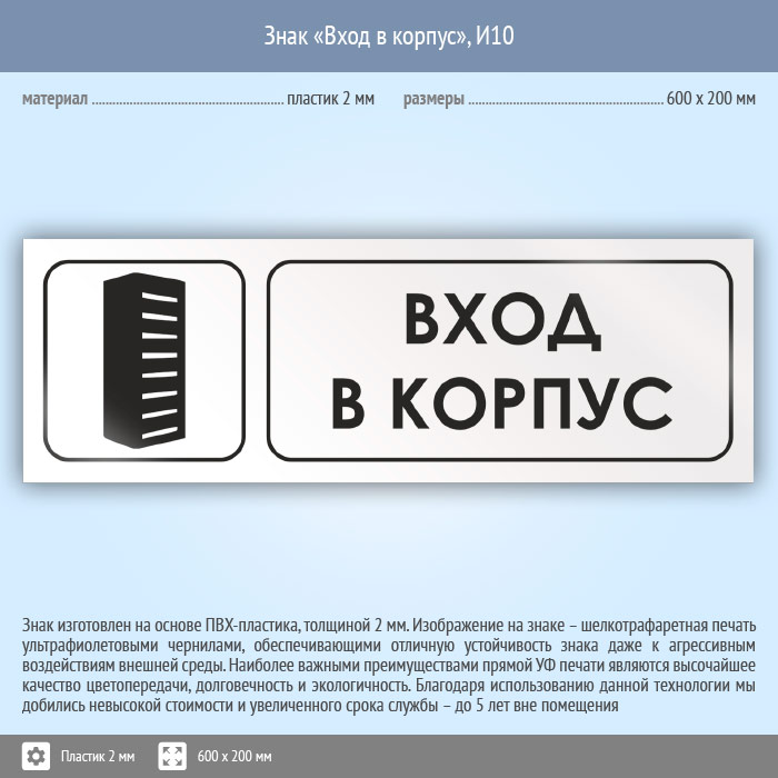 Знак «Вход в корпус», И10 (пластик, 600х200 мм) в Улан-Удэ купить