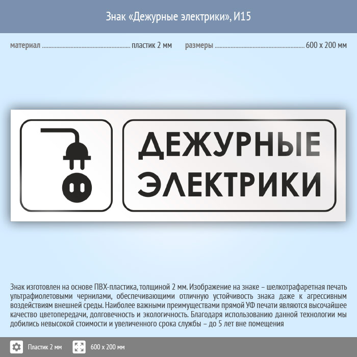 Знак «Дежурные электрики», И15 (пластик, 600х200 мм) в Улан-Удэ купить