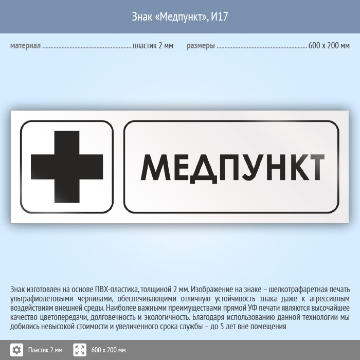 Знак «Медпункт», И17 (пластик, 600х200 мм) в Улан-Удэ купить