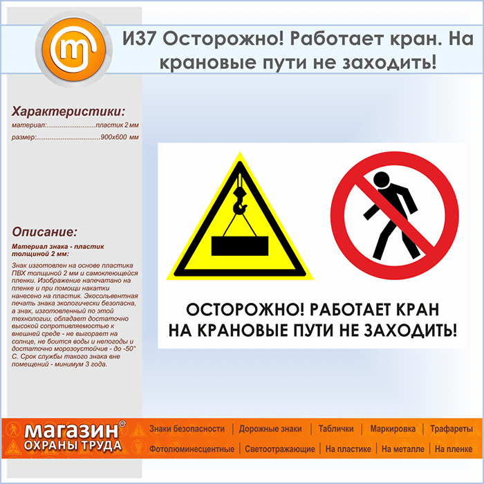 Знак «Осторожно! Работает кран. На крановые пути не заходить!», И37 (пластик, 900х600 мм) в Улан-Удэ купить