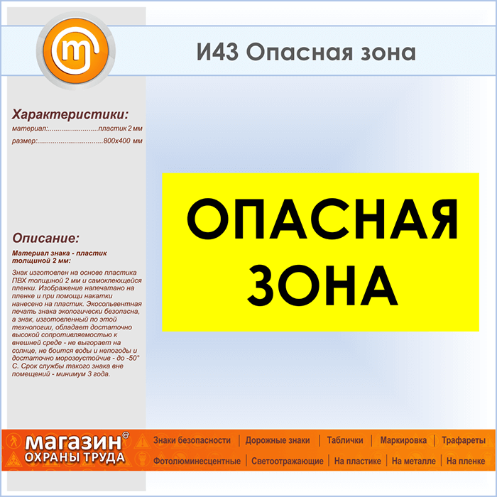 Знак «Опасная зона», И43 (пластик, 800х400 мм) в Улан-Удэ купить