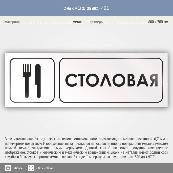 Знак «Столовая», И01 (металл, 600х200 мм) в Улан-Удэ купить