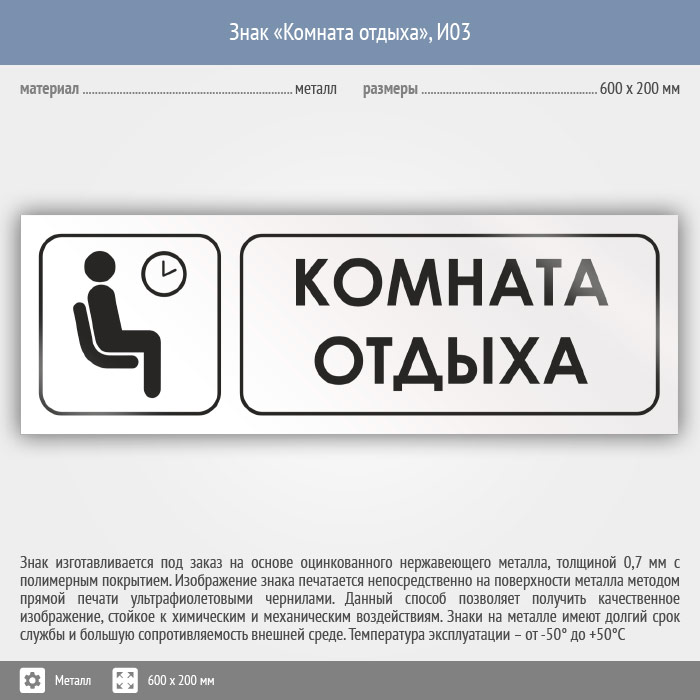 Знак «Комната отдыха», И03 (металл, 600х200 мм) в Улан-Удэ купить