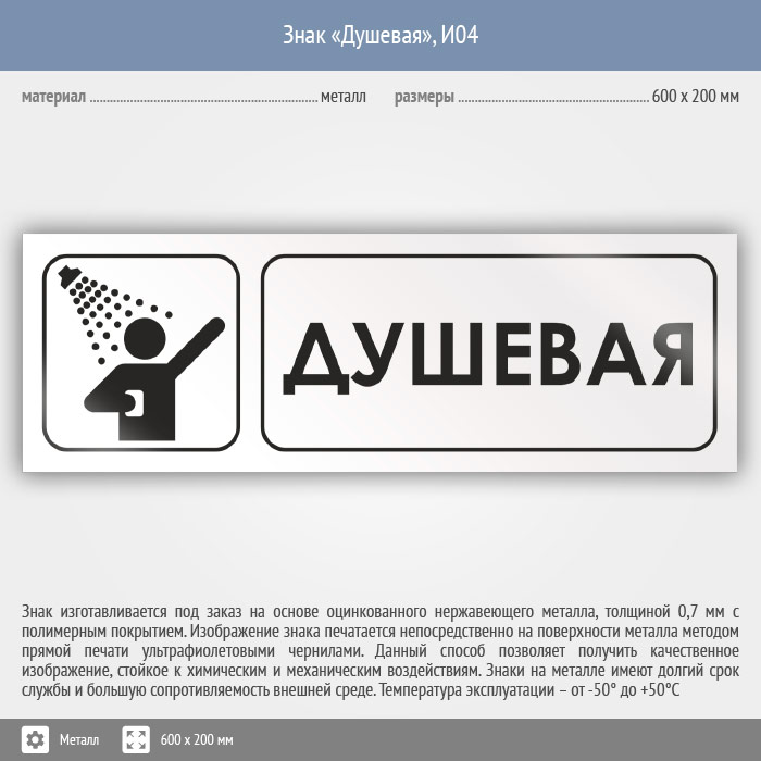 Знак «Душевая», И04 (металл, 600х200 мм) в Улан-Удэ купить