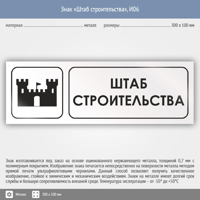 Знак «Штаб строительства», И06 (металл, 300х100 мм) в Улан-Удэ купить