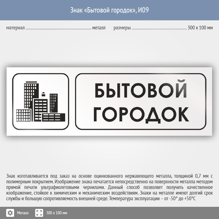 Знак «Бытовой городок», И09 (металл, 300х100 мм) в Улан-Удэ купить