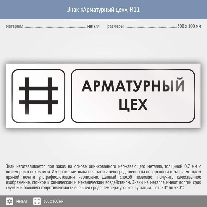 Знак «Арматурный цех», И11 (металл, 300х100 мм) в Улан-Удэ купить