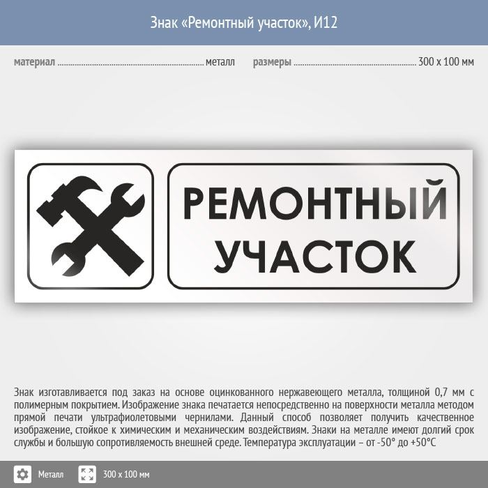 Знак «Ремонтный участок», И12 (металл, 300х100 мм) в Улан-Удэ купить