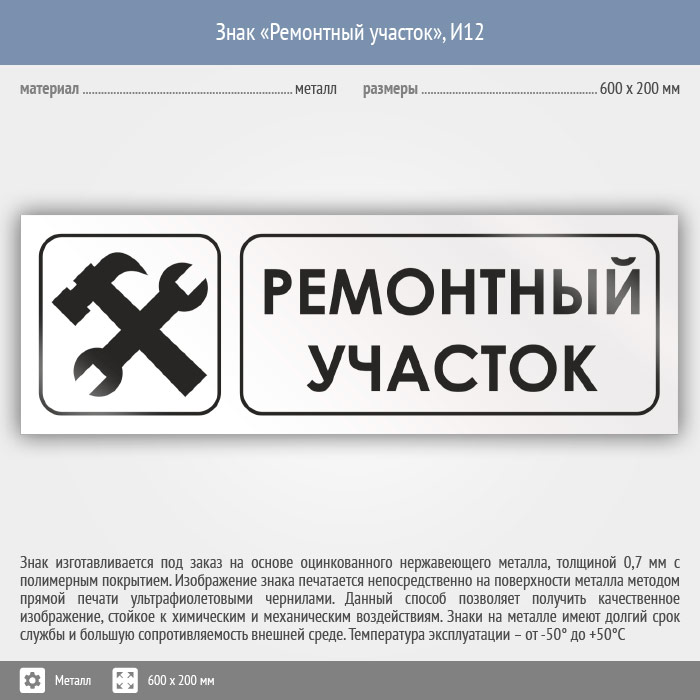 Знак «Ремонтный участок», И12 (металл, 600х200 мм) в Улан-Удэ купить