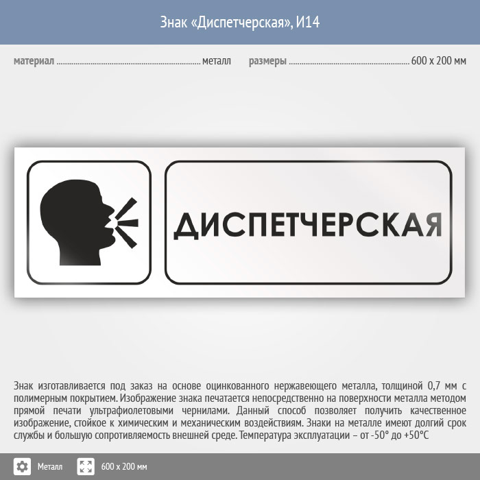 Знак «Диспетчерская», И14 (металл, 600х200 мм) в Улан-Удэ купить