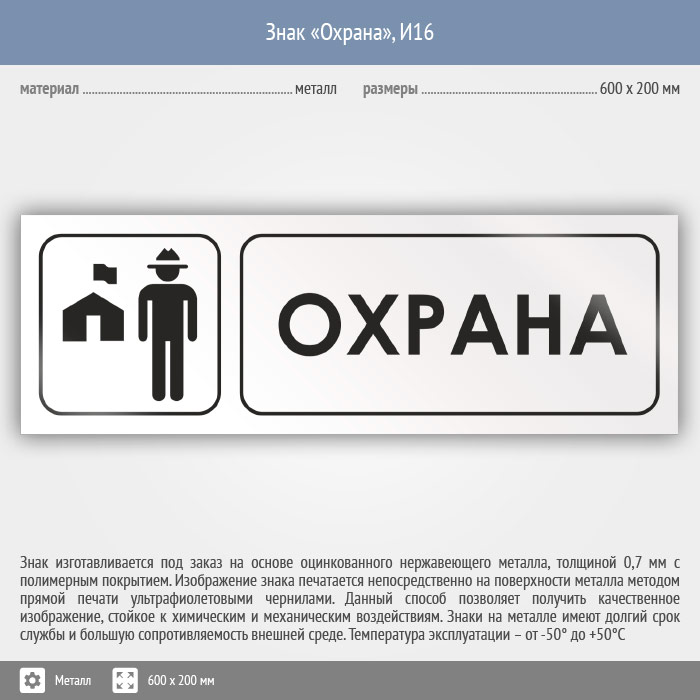Знак «Охрана», И16 (металл, 600х200 мм) в Улан-Удэ купить
