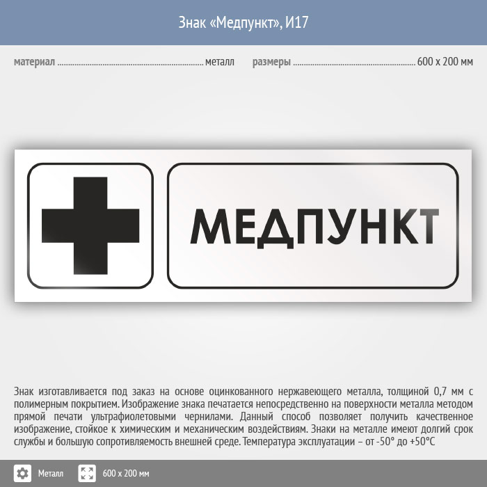 Знак «Медпункт», И17 (металл, 600х200 мм) в Улан-Удэ купить