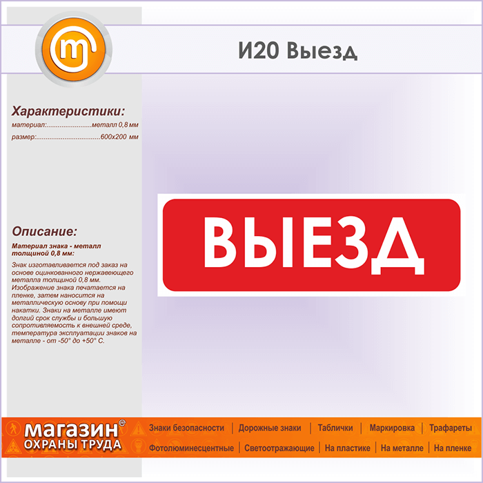 Знак «Выезд», И20 (металл, 600х200 мм) в Улан-Удэ купить