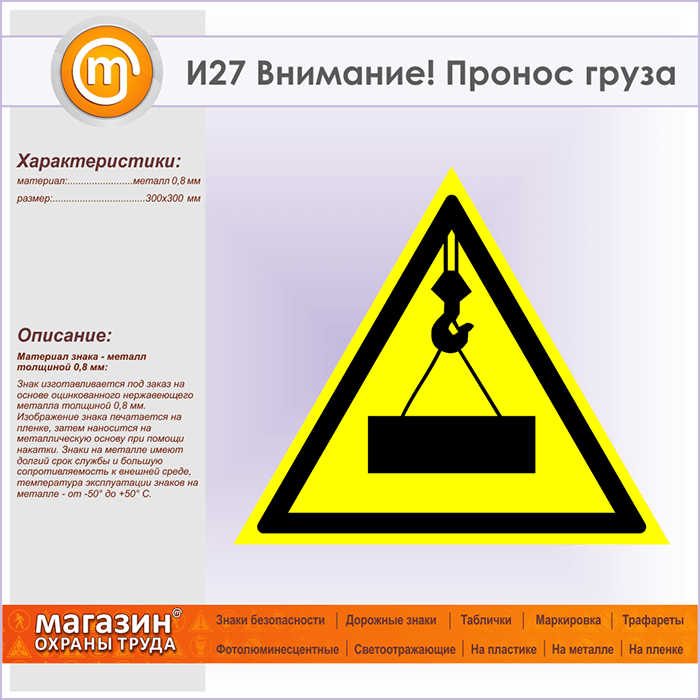 Знак «Внимание! Пронос груза», И27 (металл, сторона 300 мм) в Улан-Удэ купить