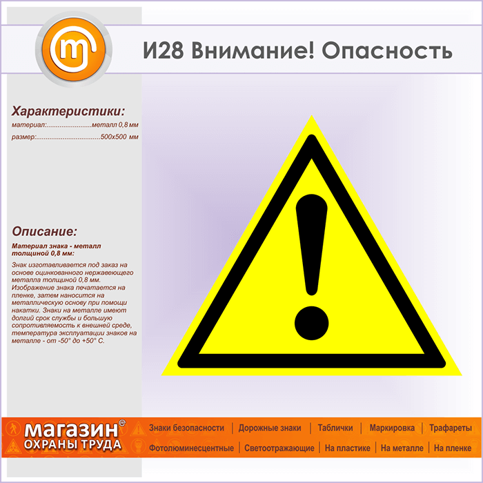 Знак «Внимание! Опасность», И28 (металл, сторона 500 мм) в Улан-Удэ купить