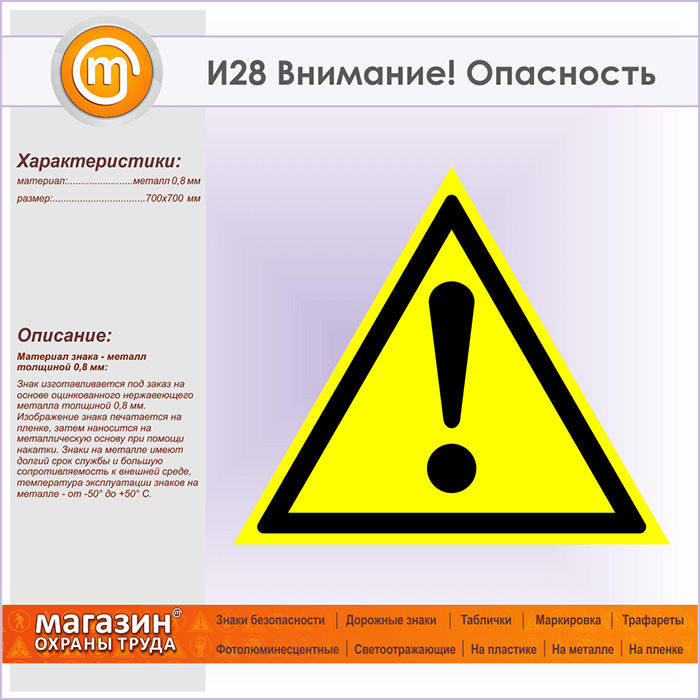 Знак «Внимание! Опасность», И28 (металл, сторона 700 мм) в Улан-Удэ купить