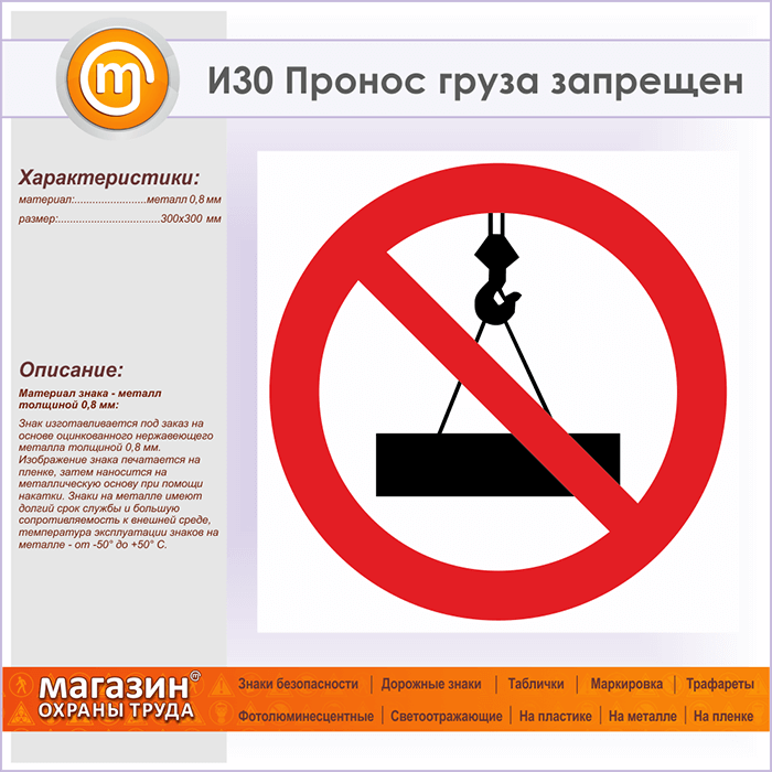 Знак «Пронос груза запрещен», И30 (металл, 300х300 мм) в Улан-Удэ купить