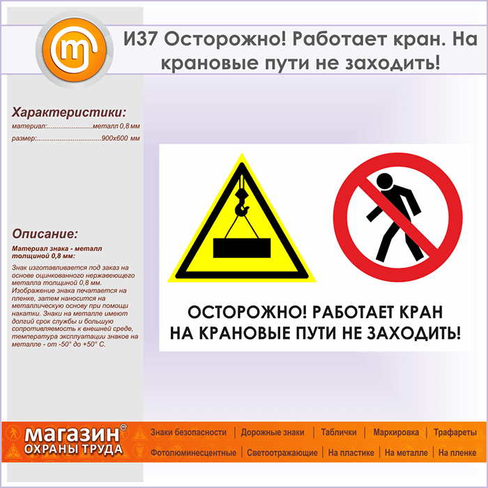 Знак «Осторожно! Работает кран. На крановые пути не заходить!», И37 (металл, 900х600 мм) в Улан-Удэ купить