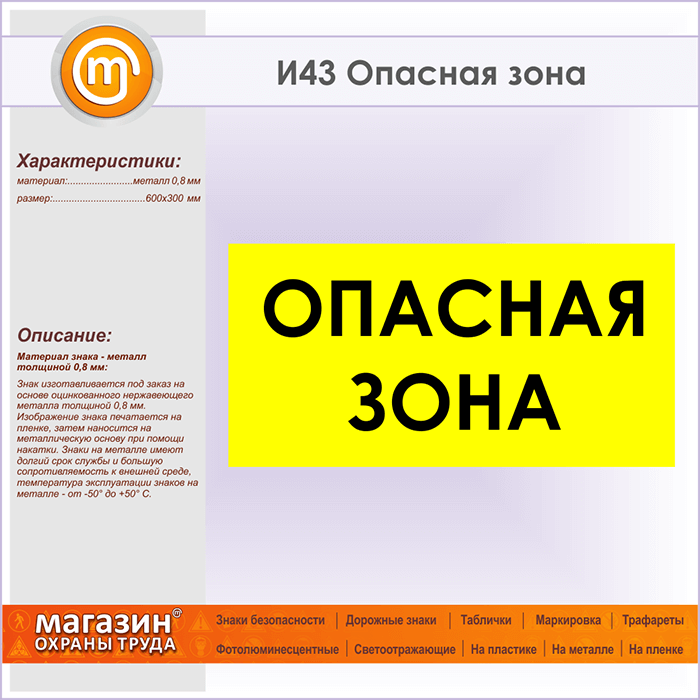 Знак «Опасная зона», И43 (металл, 600х300 мм) в Улан-Удэ купить