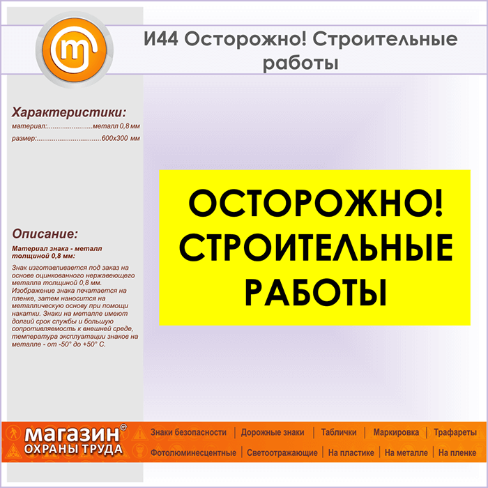 Знак «Осторожно! Строительные работы», И44 (металл, 600х300 мм) в Улан-Удэ купить
