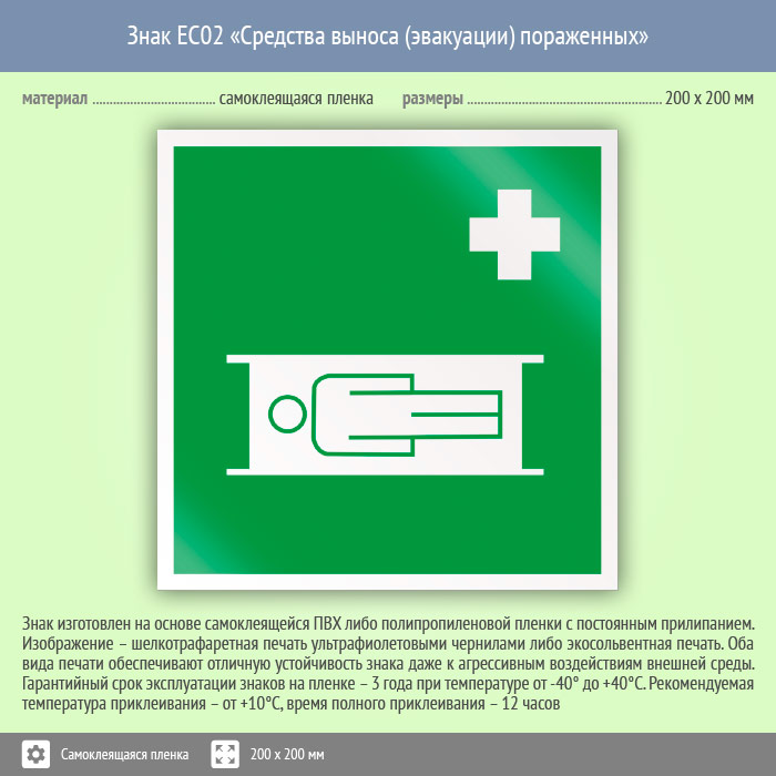 Знак EC02 «Средства выноса (эвакуации) пораженных» (пленка, 200х200 мм) в Улан-Удэ купить