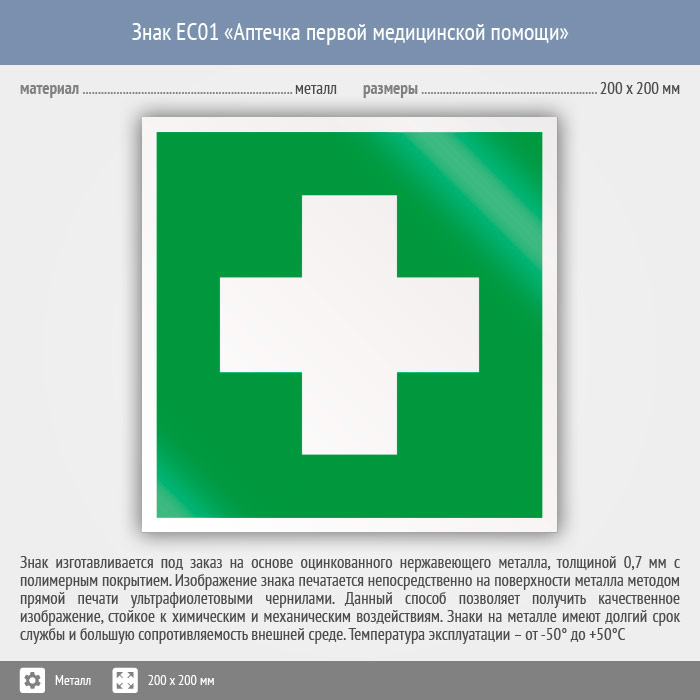 Знак EC01 «Аптечка первой медицинской помощи» (металл, 200х200 мм) в Улан-Удэ купить
