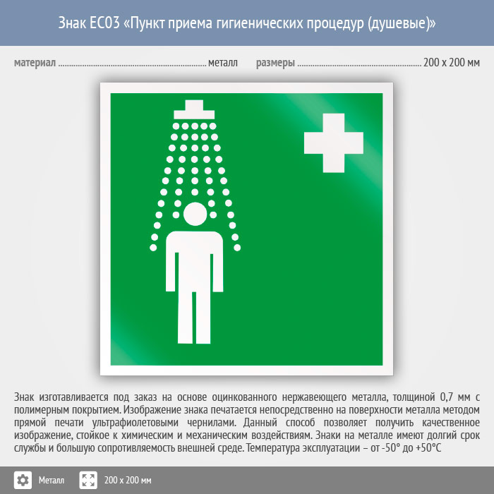 Знак EC03 «Пункт приема гигиенических процедур (душевые)» (металл, 200х200 мм) в Улан-Удэ купить