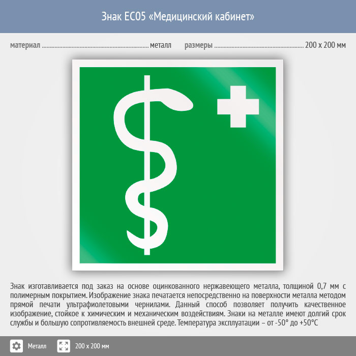 Знак EC05 «Медицинский кабинет» (металл, 200х200 мм) в Улан-Удэ купить