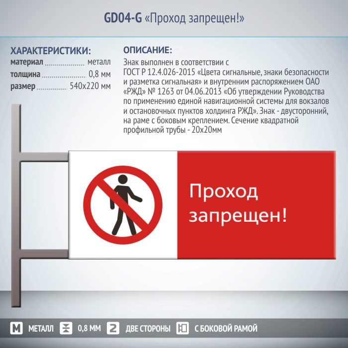 Знак «Проход запрещен!», GD04-G (двусторонний горизонтальный, 540х220 мм, металл, на раме с боковым креплением) в Улан-Удэ купить