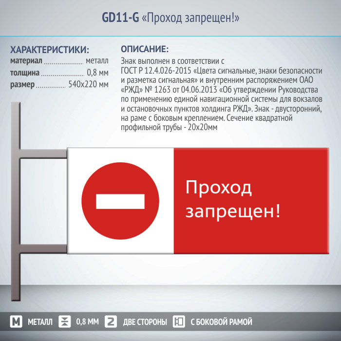 Знак «Проход запрещен!», GD11-G (двусторонний горизонтальный, 540х220 мм, металл, на раме с боковым креплением) в Улан-Удэ купить
