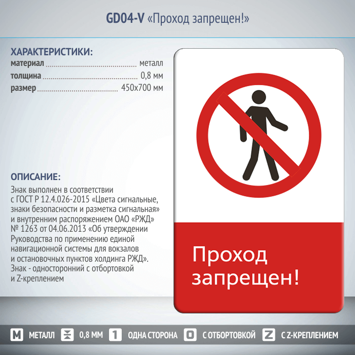 Знак «Проход запрещен!», GD04-V (односторонний вертикальный, 450х700 мм, металл, с отбортовкой и Z-креплением) в Улан-Удэ купить