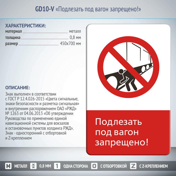 Знак «Подлезать под вагон запрещено!», GD10-V (односторонний вертикальный, 450х700 мм, металл, с отбортовкой и Z-креплением) в Улан-Удэ купить