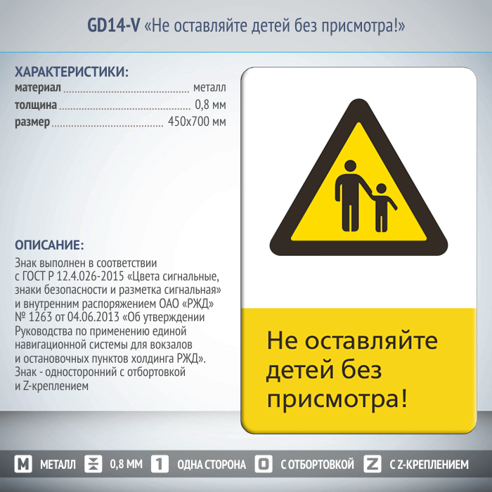 Знак «Не оставляйте детей без присмотра!», GD14-V (односторонний вертикальный, 450х700 мм, металл, с отбортовкой и Z-креплением) в Улан-Удэ купить
