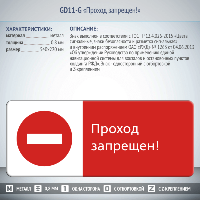 Знак «Проход запрещен!», GD11-G (односторонний горизонтальный, 540х220 мм, металл, с отбортовкой и Z-креплением) в Улан-Удэ купить