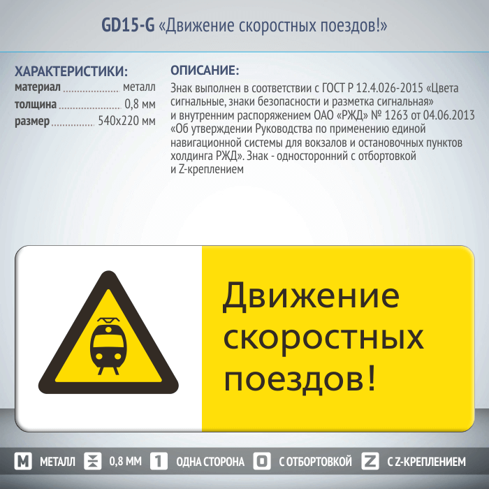 Знак «Движение скоростных поездов!», GD15-G (односторонний горизонтальный, 540х220 мм, металл, с отбортовкой и Z-креплением) в Улан-Удэ купить