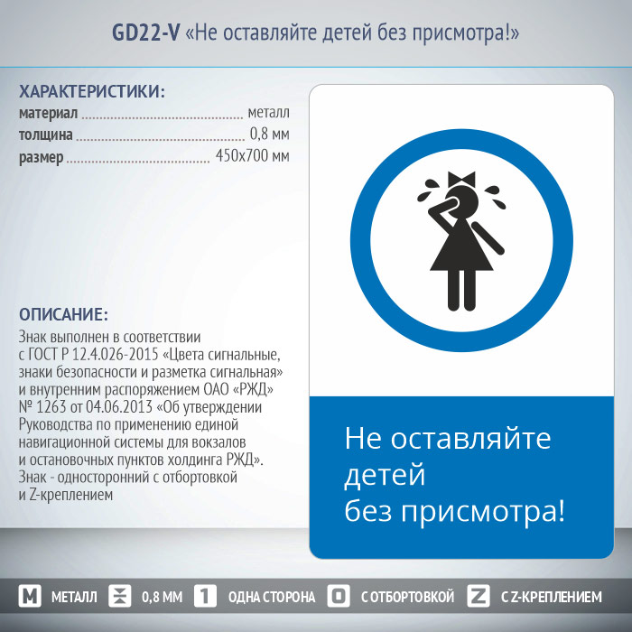 Знак «Не оставляйте детей без присмотра!», GD22-V (односторонний вертикальный, 450х700 мм, металл, с отбортовкой и Z-креплением) в Улан-Удэ купить