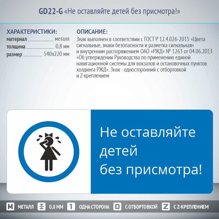 Знак «Не оставляйте детей без присмотра!», GD22-G (односторонний горизонтальный, 540х220 мм, металл, с отбортовкой и Z-креплением) в Улан-Удэ купить