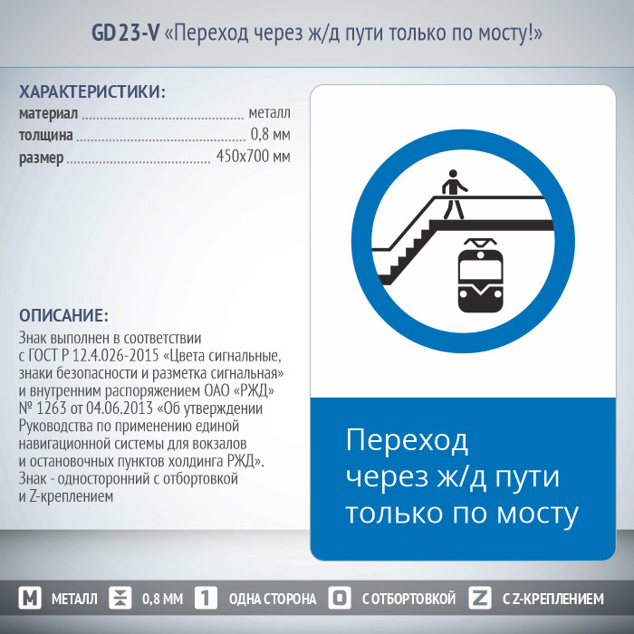 Знак «Переход через ж/д пути только по мосту!», GD23-V (односторонний вертикальный, 450х700 мм, металл, с отбортовкой и Z-креплением) в Улан-Удэ купить