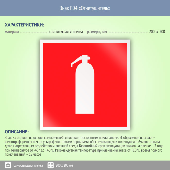 Знак F04 «Огнетушитель» (пленка, 150х150 мм) в Улан-Удэ купить