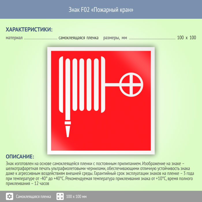 Знак F02 «Пожарный кран» (пленка, 100х100 мм) в Улан-Удэ купить