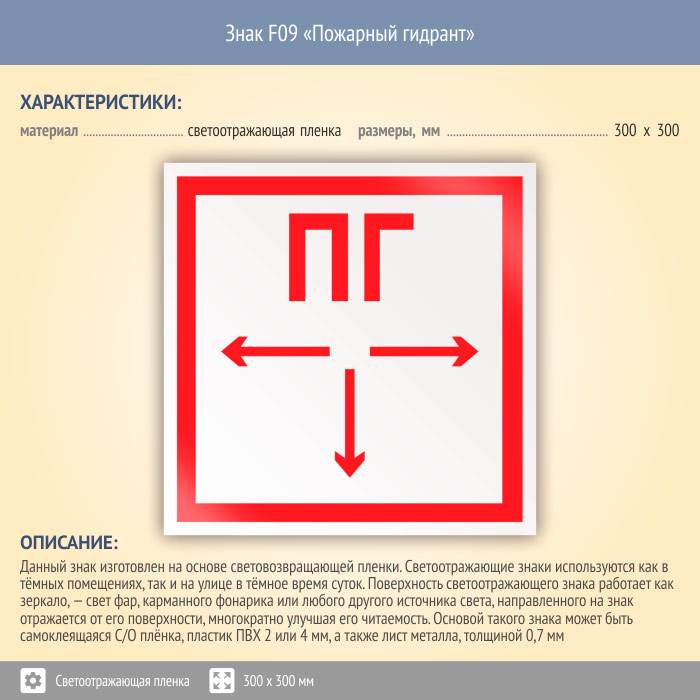 Знак F09 «Пожарный гидрант» (светоотражающая пленка, 300х300 мм) в Улан-Удэ купить