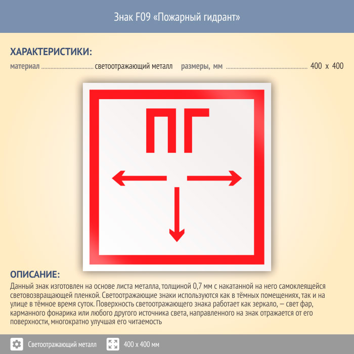 Знак F09 «Пожарный гидрант» (светоотражающий металл, 400х400 мм) в Улан-Удэ купить