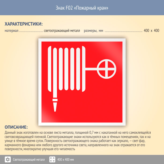 Знак F02 «Пожарный кран» (светоотражающий металл, 400х400 мм) в Улан-Удэ купить