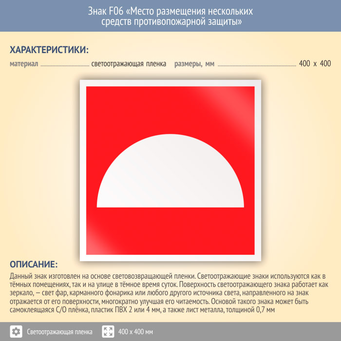 Знак F06 «Место размещения нескольких средств противопожарной защиты» (светоотражающая пленка, 400х400 мм) в Улан-Удэ купить