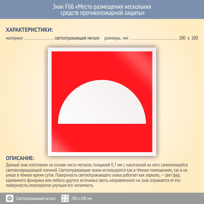 Знак F06 «Место размещения нескольких средств противопожарной защиты» (светоотражающий металл, 200х200 мм) в Улан-Удэ купить