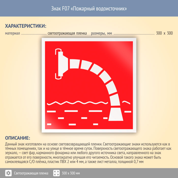 Знак F07 «Пожарный водоисточник» (светоотражающая пленка, 300х300 мм) в Улан-Удэ купить