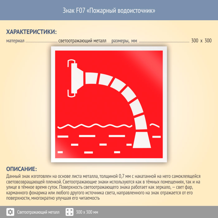 Знак F07 «Пожарный водоисточник» (светоотражающий металл, 300х300 мм) в Улан-Удэ купить