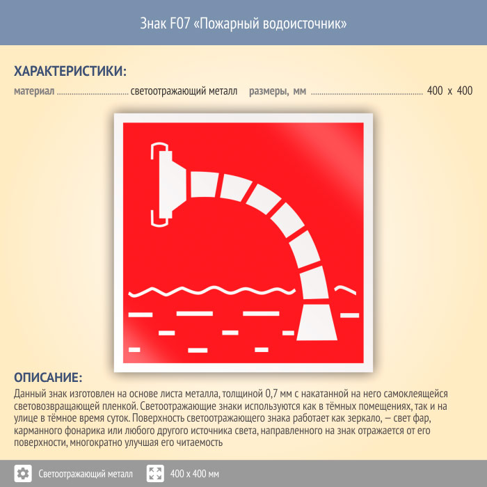 Знак F07 «Пожарный водоисточник» (светоотражающий металл, 400х400 мм) в Улан-Удэ купить